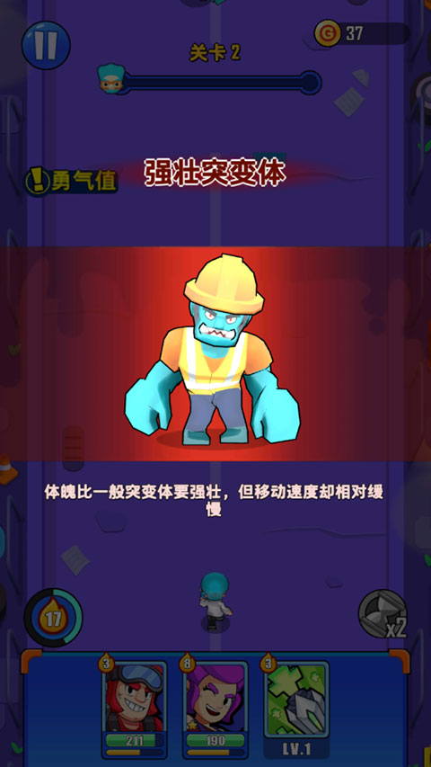 4、每过一关都会有新元素出现,如这个强壮突变体僵尸,比一般僵尸更强壮但是速度更缓慢;