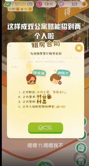 注意:在招到第一个租客之后先不要急着签约,点灰色的选项去招募第二个租客;