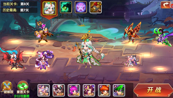 一键破敌功能---只可在当前关卡低于历史最高关卡时使用,点击后直接扫荡至历史最高关卡,并给予其中的奖励。