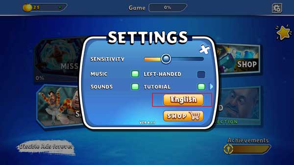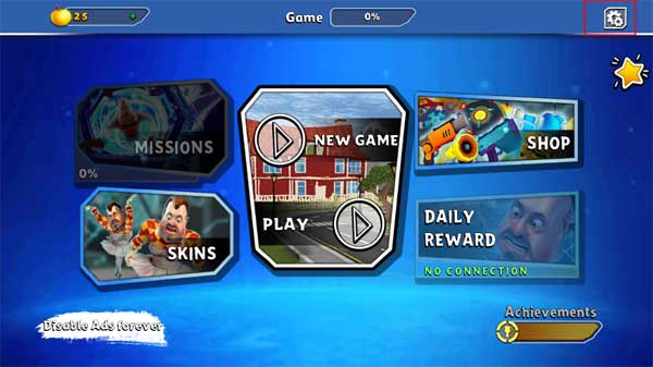 1、打开游戏默认是英文状态下的系统界面,点击右上角的齿轮按钮。