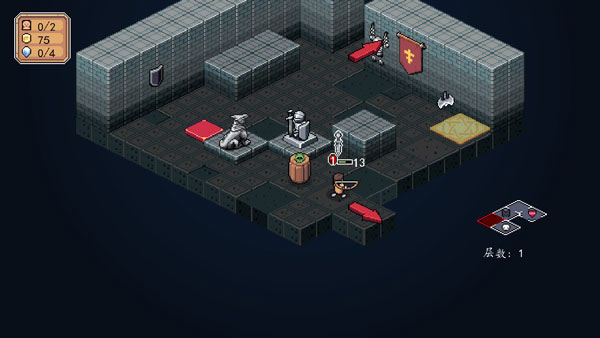 游戏中的战斗系统非常硬核,强调策略和走位。每个角色都有独特的技能和升级路径,玩家需要根据地牢守卫者的特性选择合适的战术。此外,武器投掷和推箱子攻击等设计为战斗增添了趣味性和深度。例如,将武器扔出造成120%伤害,或者利用陷阱和炸弹箱击败敌人,这些机制让战斗更加灵活多变。