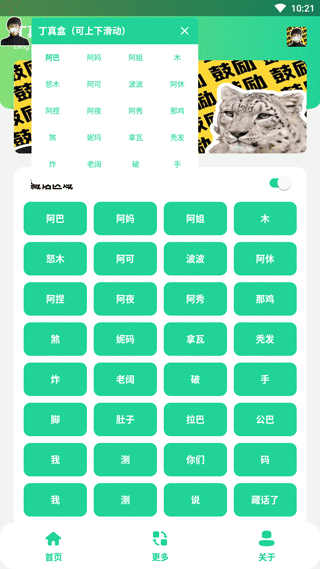 丁真盒最新版是一款极其有趣的语音盒子,在这个软件中玩家可以见到很多非常好玩的语音,如芝士雪豹,芝士舍利,芝士土拨鼠等,并且使用操作简单,点击按钮就能发出相应的声音。同时软件还将各种不同的语音进行分类,能够让用户们可以更加方便的进行选择和收听。