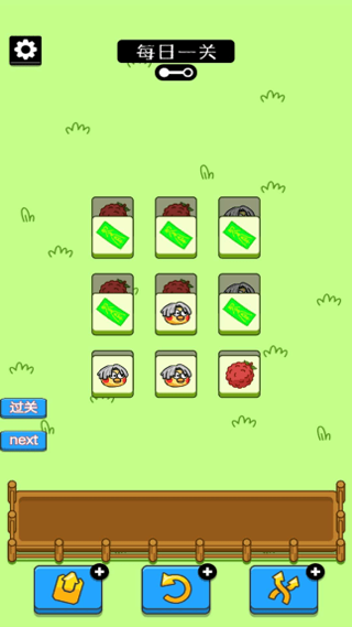 2、游戏采用三消玩法,共有两关,点击三个相同的方块到下方七格横框中即可成功消除;