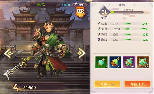 随着人物等级的提升,武将的等级也可以使用经验药水进行提升,经验药水可以通过普通副本,经验药水副本和商店兑换获得,武将的升级会带来属性的全面提升。
