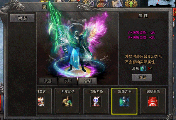九、游戏内有着多种套装,激活套装效果,可以改变技能效果,既能大幅度增加打怪效率,有你让你在PK活动中大显身手。