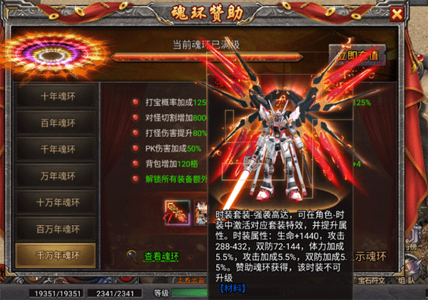 1、魂环赞助可提升各种属性还可以获取稀有装备、稀有时装