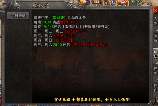 成长之路里面有详细的游戏攻略、等级成长、装备进阶、玩法介绍、BOSS说明