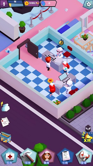 虽然,放置医院大亨是一款放置休闲游戏,但丰富的玩法,着实吸引着不少玩家的热衷追棒,在这里你可以建筑各种科室来完善诊疗设备,并记得招募各级医生和护士,治疗稀奇古怪的病症,针对不同病人购买针对性的医疗设备,可以为医院的声望和口碑赢得良好效益。同时别忘了管理你的医院护工,及时的为他们升职加薪,或建造休息室,令其工作热情更加高涨。总之,这款一款集休闲、放置、建筑和时间管理的出色模拟手游,若有喜欢的朋友可千万不要错过哦!