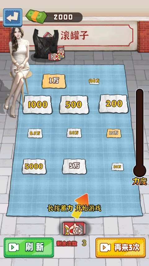 5、滚到的钱就都是你的囊中之物啦,虽然就这个机会只有三次,但是你可以点击右下角再来三次,可免广告获取更多机会。
