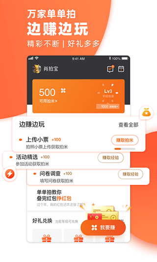 用户可以通过将自己的购物小票按照平台要求进行拍照上传,就可以获得非常多的等级经验以及拍米,