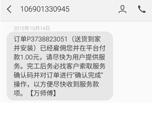 1、通知:师傅被雇佣后,会收到1条通知短信