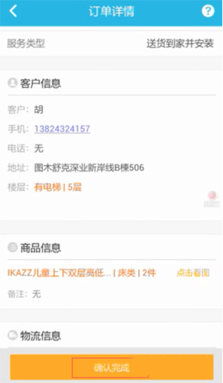 把客户签好的服务签收单和完工后的商品拍照上传;现场向客户索要服务确认码输入。