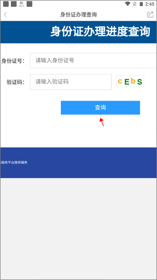 2、输入自己的身份证号和验证码,点击查询就能查看到办理进度了。