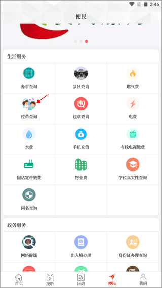 1、同样还是在【便民】界面,点击“疫苗查询”。