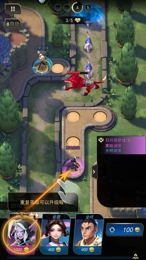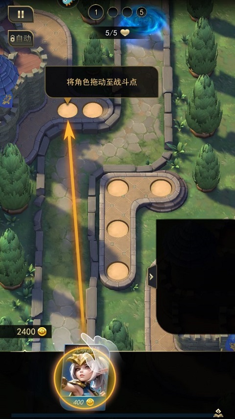 1、开局玩家可拖动底部的英雄卡牌,将角色移动到战斗点。