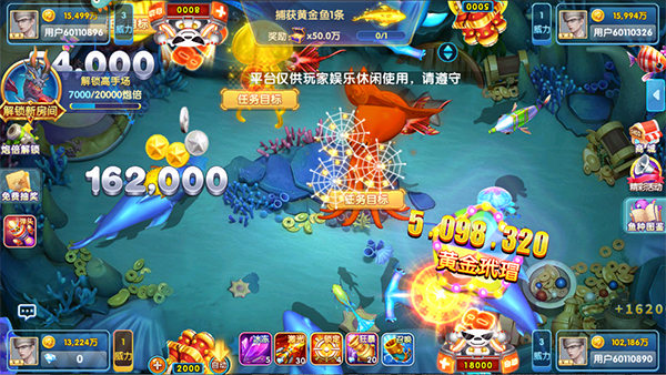 2、采用3D技术,为玩家呈现逼真的海底世界,提供身临其境的捕鱼体验。