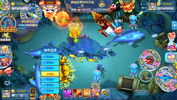 2、除了传统的捕鱼模式,还有挑战模式、竞技模式等多种玩法供玩家选择。