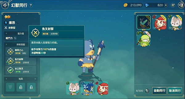 透过幻兽的同行提升版块我们可以分别看到已获得的这些幻兽各自所具备的战斗属性,有些事属于战斗攻击型,辅助战斗能力较强,有些属于防御型,能帮助主角抵挡过多的伤害值,并且我们可以透过提升幻兽来提升这些属性(优先提升不同克制属性及高星级的幻兽),来帮助玩家在战斗中立于不败之地,实际上,幻兽是非常适合玩家在刷怪的时候用到的辅助道具的一类。