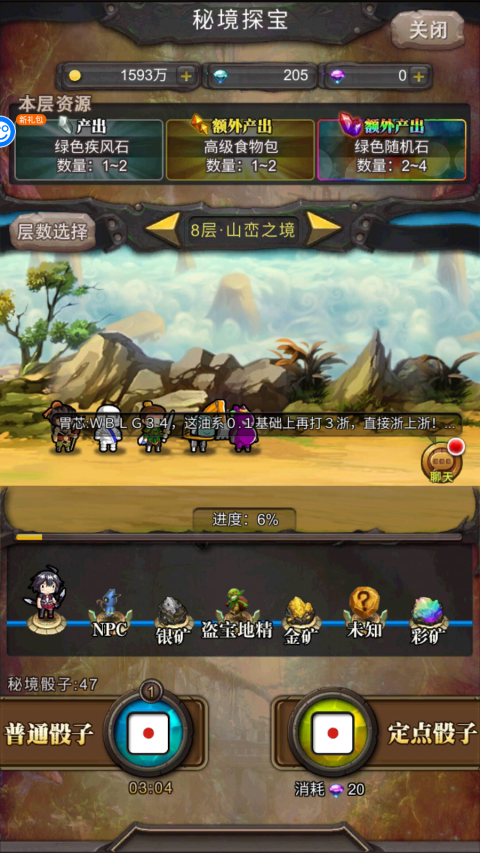 3、进入秘境,使用骰子前进,可能会碰到矿物或者敌人,尽情战斗就可以。
