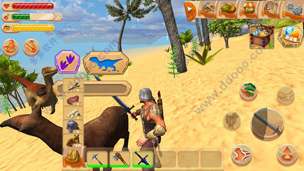 游戏集生存和驯兽与一体,还可以进行道具制作,狩猎,驾驭恐龙等操作,期间你不能让你的体力和饥饿度耗尽,同时装备武器的佩戴,各种资源的获取也是为后续持续生存奠定了基础。