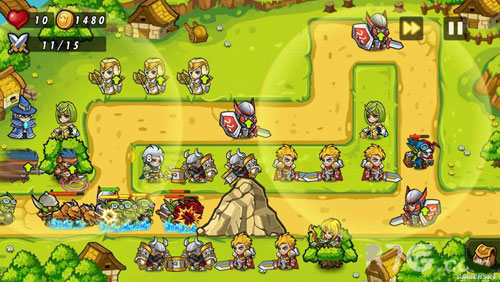 石头被炸开后,补出更多大剑士和神射手,如果血量紧张,在后方出更多祭司即可,只要能在第六波的小丑之前做好输出的准备,本关经济还是很宽裕的,掌握正确的方法后不算困难