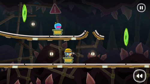 第4关:将第一场景调成拿矿镐的动物,第二场景调成断开的轨道,再点击开始按钮即可顺利过关