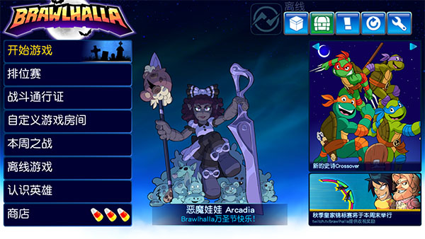 格斗哈拉手机版最新版是一款2D横版动作格斗游戏,由官方从steam移植而来,又叫英灵乱战,英文名叫Brawlhalla。游戏的玩法十分丰富,不光有1v1单人对战,还支持本地以及在线多人对战,玩家可以随时邀请好友或者和其他玩家一起在线竞技。除此之外,游戏还提供了一些休闲模式,如大乱斗等。