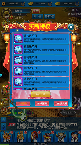 3、神话武将:全新开放武将升仙,仙级武将带你大杀四方!