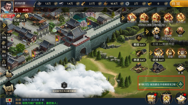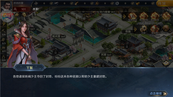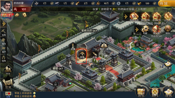 6、由于各地诸侯送来了各种资源,玩家可以通过这些资源升级和重建自己的封地,我们点击升级;