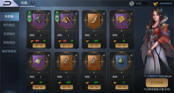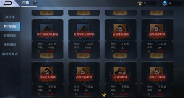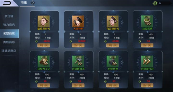 四、各大商店购买(杂货铺、势力商店、名望商店、贵族商店等)