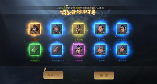 过关斩将中,也可获得武将碎片奖励;同时游戏内的部分任务也将奖励武将碎片。