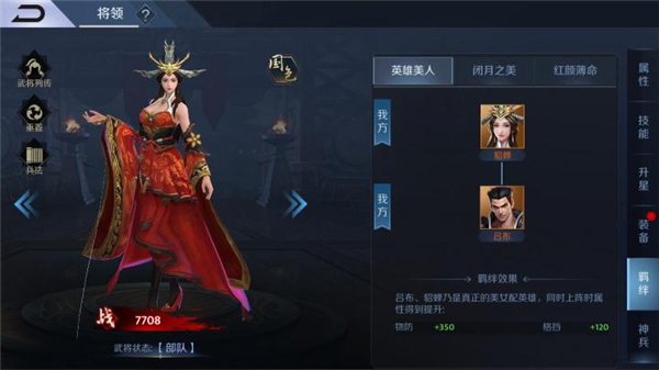此外,《止戈》每一位武将都分别与其余几位武将存在羁绊加成,比如曹操就有着六大羁绊,前后可搭配出数百种阵容搭配,针对敌军阵容特性对症下药,胜率往往会大大增加。正所谓男女搭配干活不累,孙策、孙权和周瑜带上大小乔后即可组成顶级阵容“吴国皇室”,凑齐大量羁绊后输出惊人,唯一缺点是经不起骑兵冲击,因为后排都是奶妈容易被骑脸杀穿。
