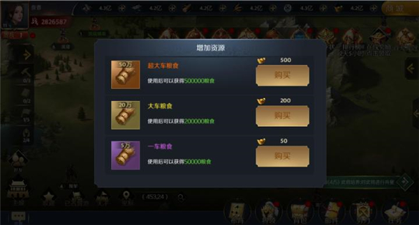 十一、点击界面上方资源后方的“+”,直接消耗黄金购买资源,该方式简单快捷有效,适合大R玩家,嘻嘻!
