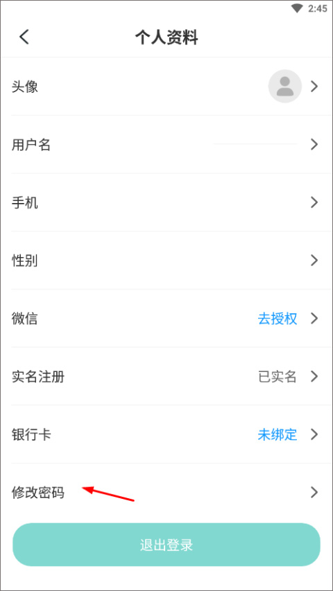 2、然后点击头像按钮,找到修改密码;