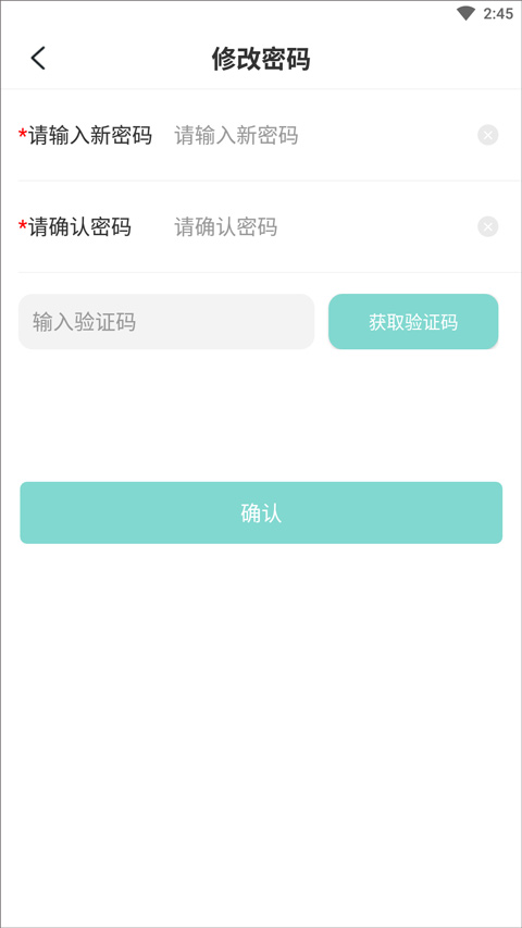 3、最后输入修改密码和确认密码,获取验证码后点击确认即可。
