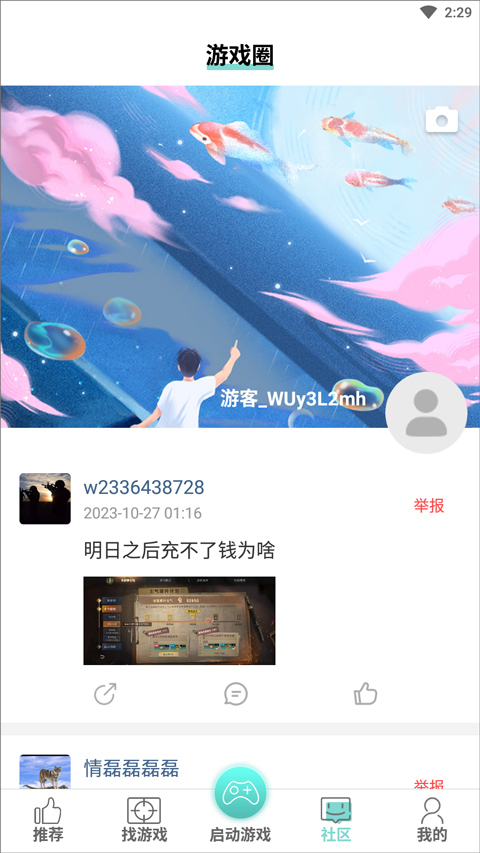 不仅如此,游戏鱼游戏盒子内还拥有社区功能,在这里会有很多的小伙伴发布动态,你可以参与点赞、评论、转发等等,找到志同道合的朋友,与他们一起开黑,愉快的玩耍,感兴趣的朋友快来下载使用吧。