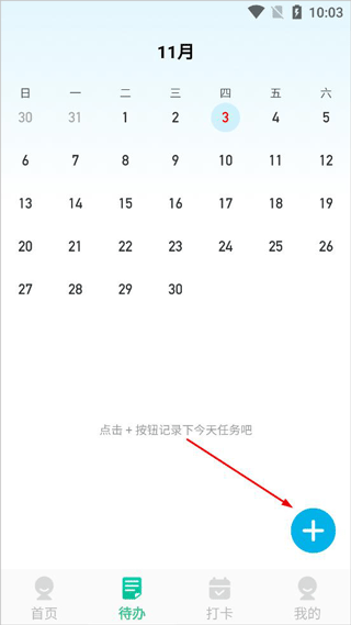 2、点击待办页面右侧加号,可以设置待办事项时间和任务;