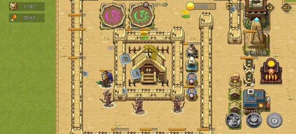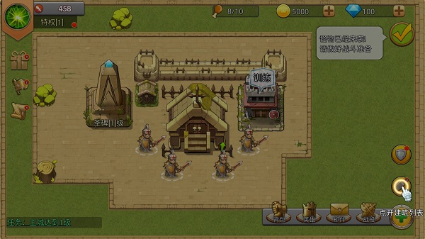 建筑列表中有许多类型的防御塔可以作为选择,有祭坛、箭塔,还有金矿、城墙等等,不过初期来说,先建造一些箭塔进行防御!