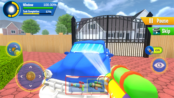 画面风格是卡通的,看起来很舒服。操作也简单,你可以自由选择清洗顺序和使用的工具,比如先用大口径喷嘴冲掉浮灰,再换小喷嘴处理顽固污渍。这种自由度让我觉得挺有意思的。