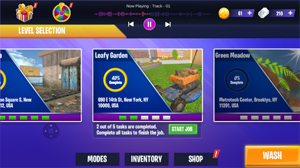 这款动力清洗模拟器手机版英文名叫Power Washing,玩法挺有意思的。你经营一家洗车店,用各种工具清洁车辆赚取收益。游戏里有好多关卡,每个关卡都有不同的地图和任务需要完成,玩起来很有挑战性。