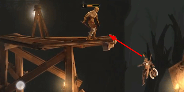 4、击败上层的敌人以后,我们一直往前移动,可以在终点处找到下图开门的机关;