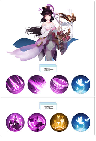 灵心的两大流派分别是【弦歌】和【医仙】。灵心弟子能以花鸟风月之力愈人伤痛,也能以翩翩舞步、清越琴音致人死命,在拥有恐怖远程输出的同时,还可通过技能恢复自身血量,并持续为我方队友加血,承天地之气庇佑,凝为屏障,舞步翩跹。