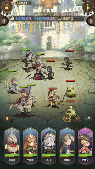 5、自动战斗:游戏中设有全自动战斗模式,玩家只需安排好战斗阵营,即可自动进行战斗,节省时间和精力。