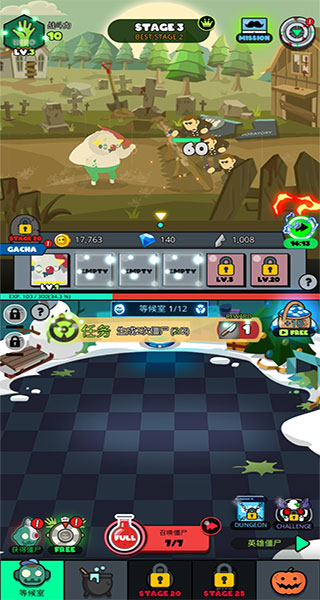 游戏中的关卡设计丰富,宝箱奖励丰厚,还有各种段位提升和军团荣耀等着你。新人玩家可以通过生产士兵并进行合并来完成任务,而进阶玩法则包括地牢挑战、收集战利品、离线挂机等功能。此外,玩家可以解锁30种不同的僵尸单位,并通过胸卡奖励系统获取强力装备。