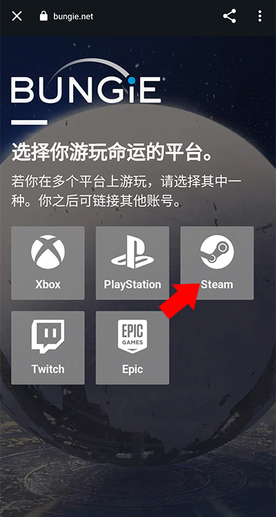 2、来到下方登录界面后,选择我们游玩的账号平台(steam可能需要加速器才可完成正常登录)