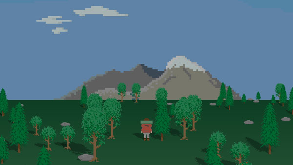 2、进入游戏后如图,你处在一个房子前,手里有一把斧子,你要去不断砍树获取木材;