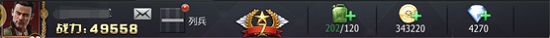 首先来看一下主界面顶部的菜单,在这一行菜单里涵盖了我们游戏当中所有的资源及任务信息选项,最右方的油桶代表体力,而金币和钻石都是游戏中不可或缺的资源。