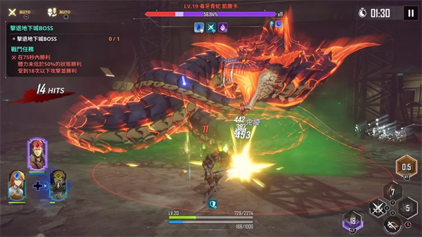 - 主线章节全手动挑战,失败后可获得完全回复奖励。