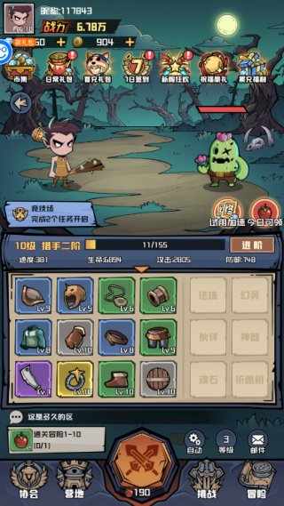 野人纪是一款魔幻题材放置类开箱手机游戏,砍怪即可爆极品神装,更有试炼场、冒险、协会、营地、遗迹探险等多种游戏玩法,让玩家充分感受游戏的趣味,游戏提供了自动砍怪换装等,解放玩家的双手,减轻游戏的肝度,只需挂机即可大幅提升自己的实力,还有超多养成提升战力,丰富玩法畅爽游戏,更有全新自由搭配系统在策略中完成逆袭!