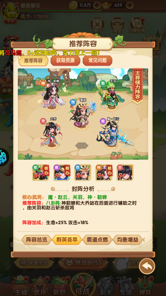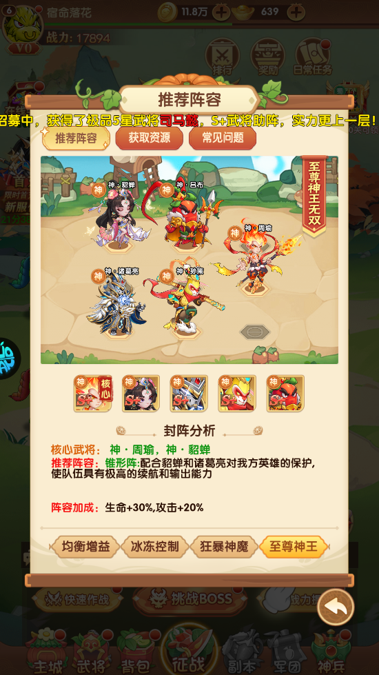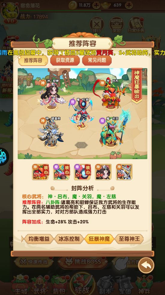 神・貂蝉+神・吕布+魔・左慈+神・诸葛亮+魔・关羽